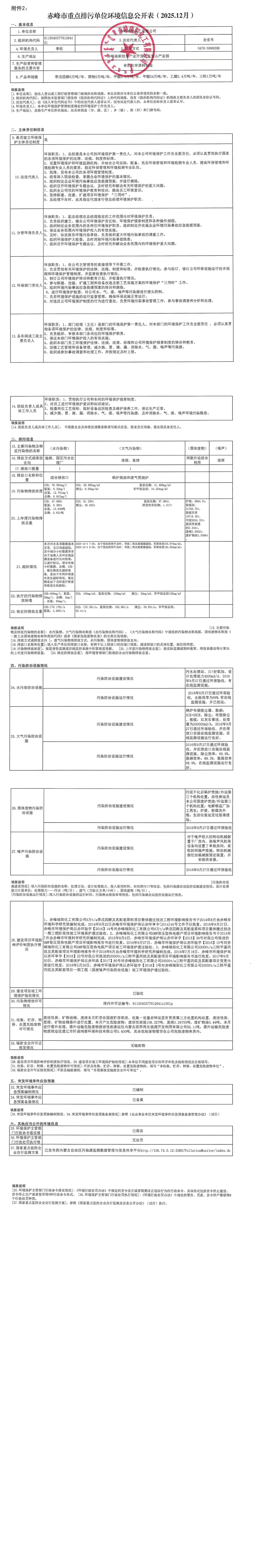 赤峰市重點(diǎn)排污單位環(huán)境信息公開表【2025.12】
